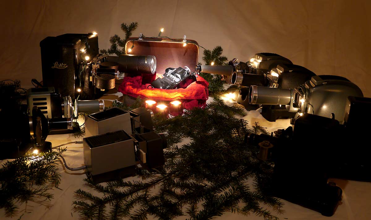 Während der neue Leitz VIIIi Maria darstellt, Josef als VIIIs 375 dasteht und die Heiligen Drei Könige von drei Prado 500 verkörpert werden, kommen zwei Pradix und ein Prado 150 als Schafe und Esel dazu. Auch die Hirten (zwei Uleja) fehlen nicht. Das himmlische Kind wird vom kleinsten je gebauten Projektor, dem Leica Umino aus Bakelit dargestellt.